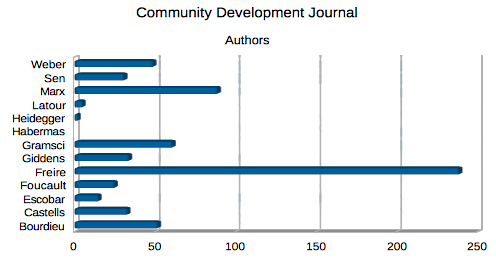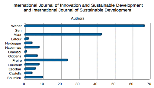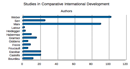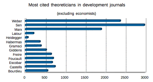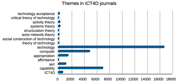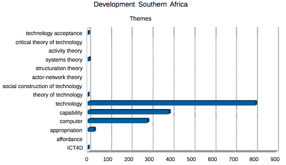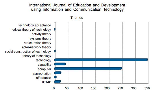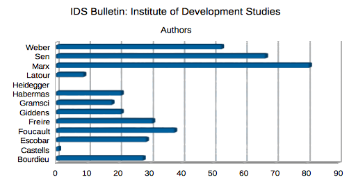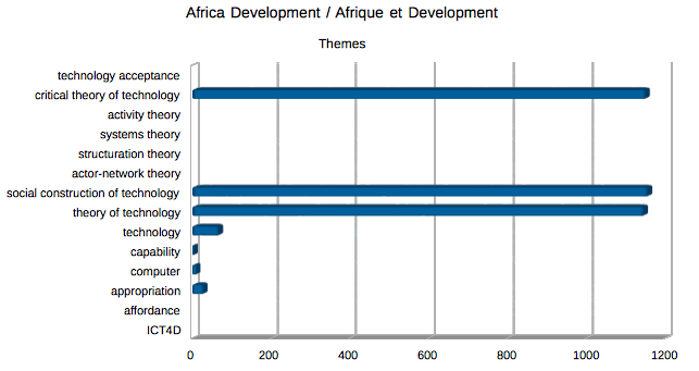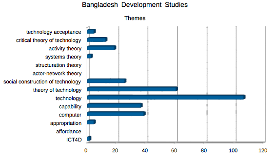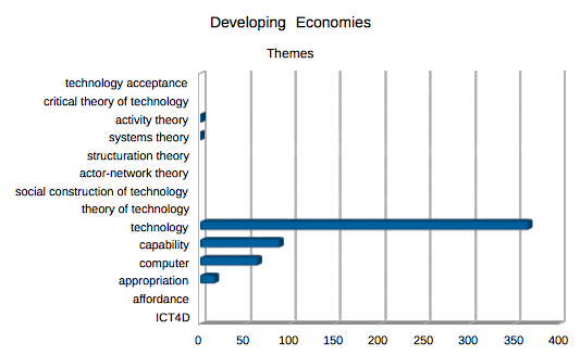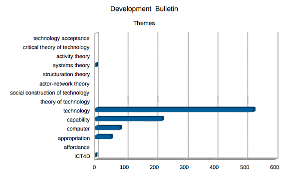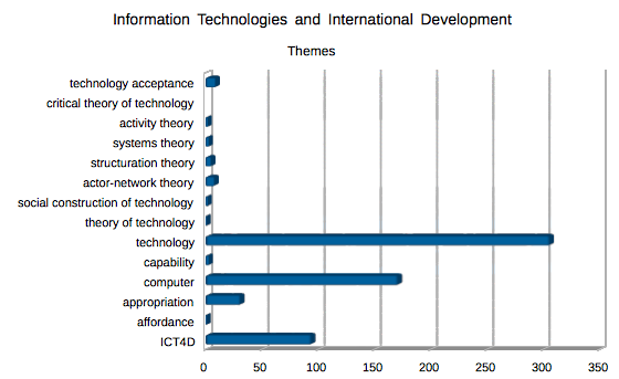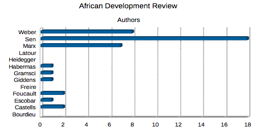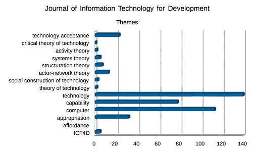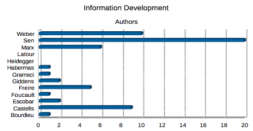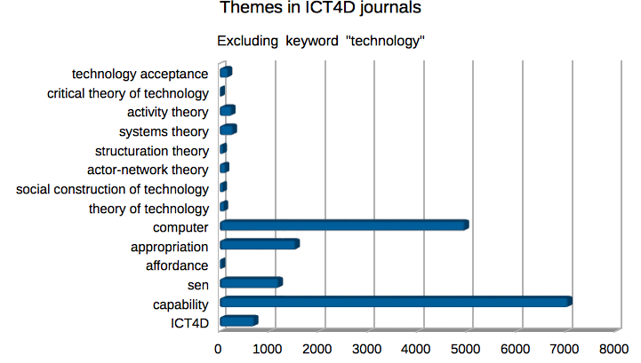 For example, although Gender & Development might be concerned with development, apart from Sen and Escobar, the total absence of any of the more technologically minded authors, suggests that technology is not much considered. Compare this with Gender, Technology and Development, where all the theoreticians typically cited in development journals feature - except, strangely Amartya Sen (but that might be due to poor search results). Although the main focus of both these two journals seems to be gender and development issues one ignores the role of technology.