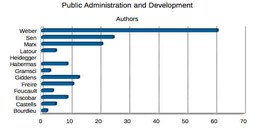Different journals focus on different themes, and different theoreticians receive prominent attention in different journals. From the data below, several correlated conclusions may be drawn, in general terms, and then also for specific journals.