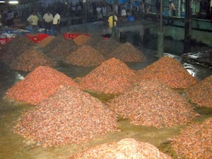 Kalamukku fish landing centre lies north of Gosree Bridge in Kochi. Compare these large catches with the very small catches of the south, such as at Vizhinjam.