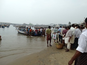 Notice the many vallams, the type of craft that dominates in the south of Kerala.