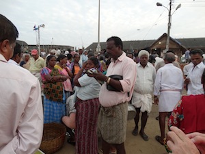 An ice crusher operator sells ice to vendors. Compare this small-scale operation with the large scale ice delivieries to trawlers in the north, such as at Beypore.