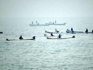 Typical fishing craft of the south, known as vallams, the type of craft that dominates in the south.