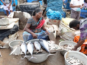 Another fish monger at Vizhinjam harbour.