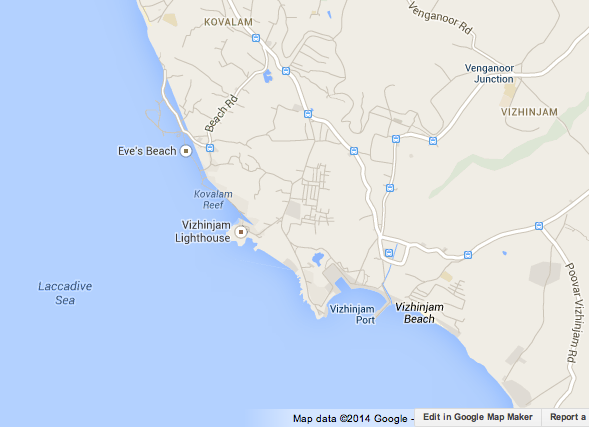 Vizhinjam is the major fishing port of Thiruvananthapuram (or Trivandrum). It is also the only safe harbour in the far south. Kovalam beach is 3 km north of Vizhinjam. There are plans to turn Vizhinjam into a deep water container port.
