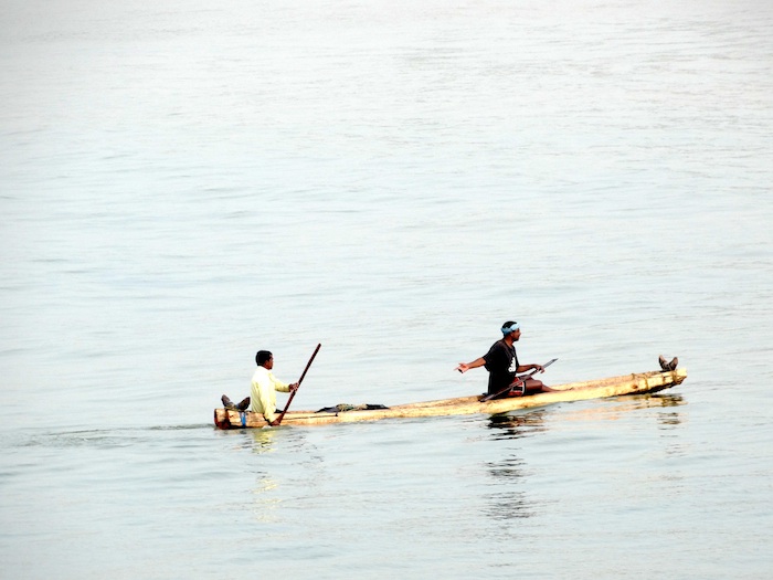 This large and heavy vallam has no outboard motor, and is rowed using muscle power.