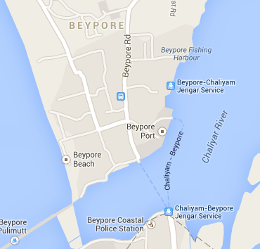 Beypore (or Beypur) is the main harbour of Kozhikode. It is 13Km south of the Kozhikode city centre, on the northern bank of the Chaliyar River. Chaliyam (where Srinivasan and Burrell conducted their research) is on the southern bank. Mainly large fishing trawlers are operated from here. Beypore fishing harbour is about a kilometer north of the Beypore goods port, which is transported by ship or large boats.