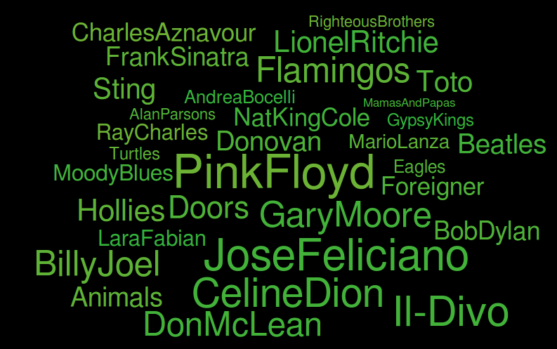 Let me help you choose your live performed music from a playlist of about 400 popular songs. Or you may prefer my DJ playlist. Here is a list of some of the artists whose songs are performed live. The list of artists is much, much longer... hit songs from the 1950s to today!