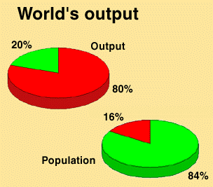 Of the world's output, 80% is produced by only 16% of its population - the so-called triad of Northern America, Developed Europe and Japan. And of that 80%, some 64.2% is produced by Europe and Northern America. The few thus carry the many.