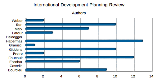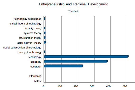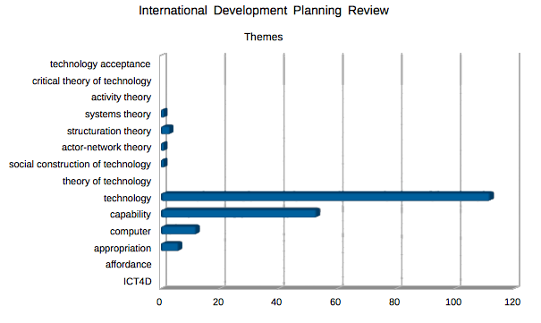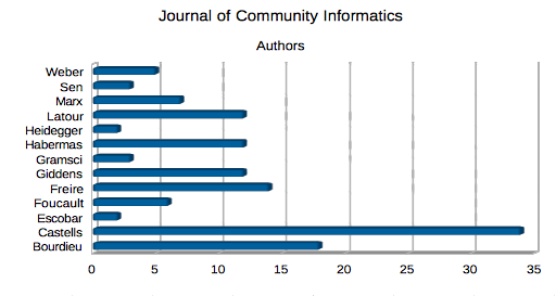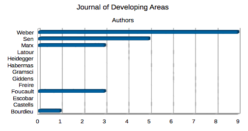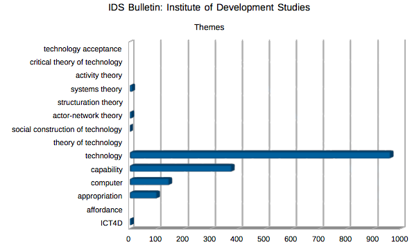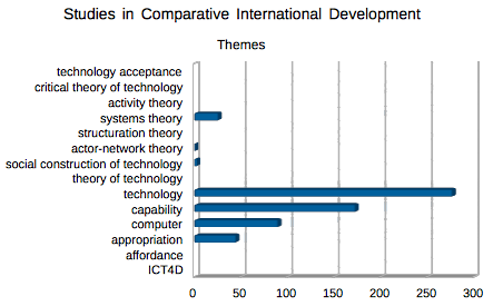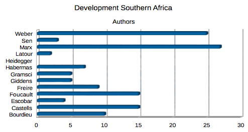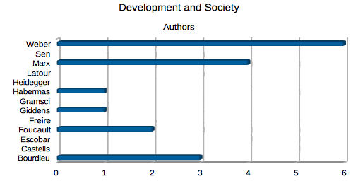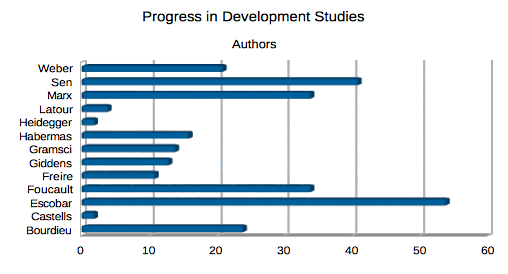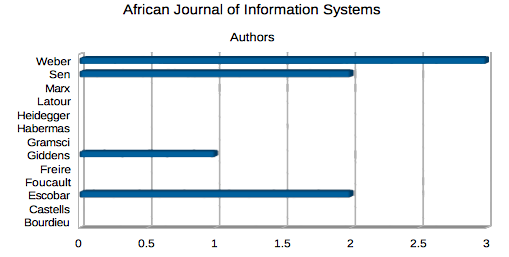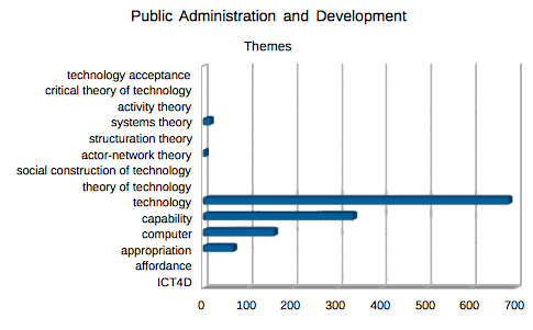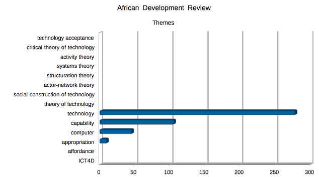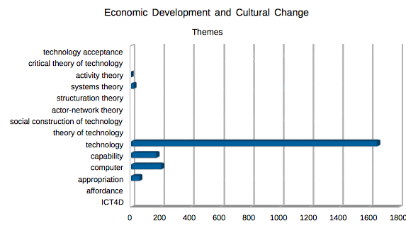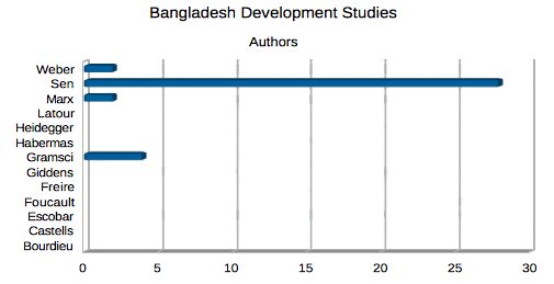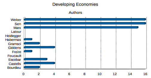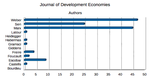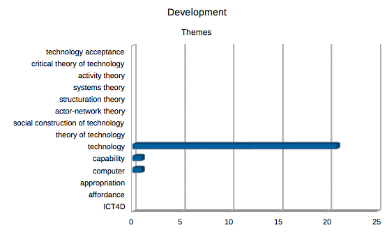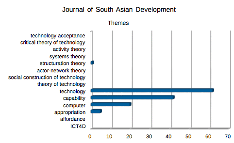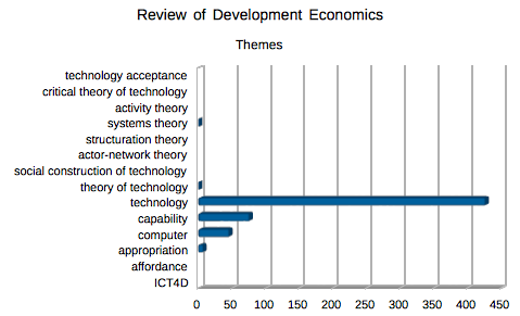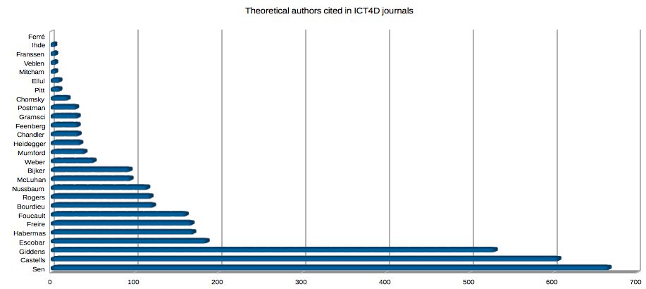 For example, although Gender & Development might be concerned with development, apart from Sen and Escobar, the total absence of any of the more technologically minded authors, suggests that technology is not much considered. Compare this with Gender, Technology and Development, where all the theoreticians typically cited in development journals feature - except, strangely Amartya Sen (but that might be due to poor search results). Although the main focus of both these two journals seems to be gender and development issues one ignores the role of technology.