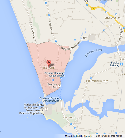 Beypore (or Beypur) is the main harbour of Kozhikode. It is 13Km north of the Kozhikode city centre. Mainly large fishing trawlers are operated from here. Beypore has another port for goods transported by ship or large boats.