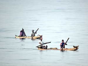 Kattumarans. Those below are rowed with planks -- i.e. not contoured oars.
