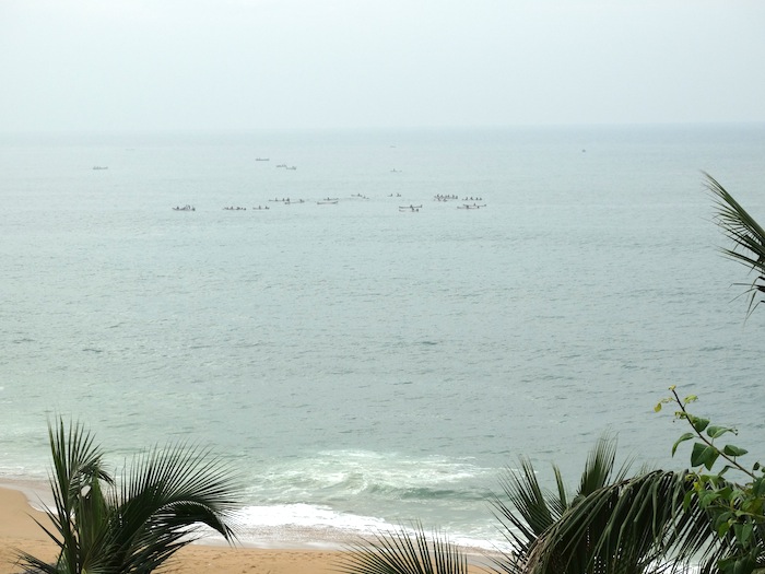 Notice the many vallams, the type of craft that dominates in the south of Kerala.