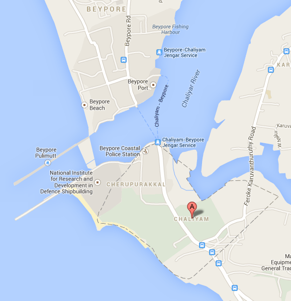 Chaliyam is a small village near Feroke, a suburb of the Kozhikode metropolitan area. It is 16km south of Kozhikode on the southern bank of the Chaliyar River (Beypore is on the northern bank).