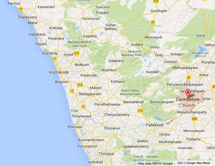 Coimbatore (also known as Kovai) is a city in Tamil Nadu in the Western Ghats mountain area, near the border of Kerala. It is the main city of the Coimbatore district in the state of Tamil Nadu.