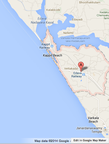 Edava is about 6km north of Varkala Beach, 53km north of Thiruvananthapuram, and 28km south of Kollam.