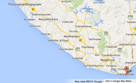 Kanyakumari (formally known as Cape Comorin) is a coastal town in the state of Tamil Nadu in India. It is 85km southeast of Thiruvananthapuram.