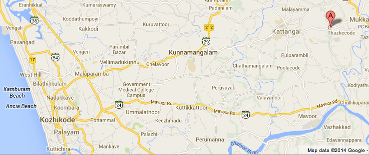 Manassery is east of Kozhikode in the interior.