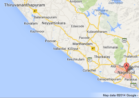 Nagercoil is a town in the southernmost Indian state of Tamil Nadu and a municipality and administrative headquarters of Kanyakumari District. It is 68 km east from the city of Thiruvananthapuram in Kerala.
