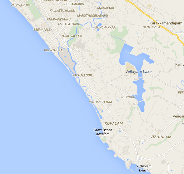 Kovalam beach is 3 km from Vizhinjam. There are plans to turn Vizhinjam into a deep water container port.