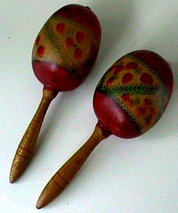 The maracas is basically a calabash (or gourd) still containing its dry seeds inside. The instrument is shaked (also called a shaker), and the seeds or other small objects bump and scrape against the inner wall of the cavity, creating sound. The body of the instrument serves as amplifier. Modern plastic variations of the instrument are also made.