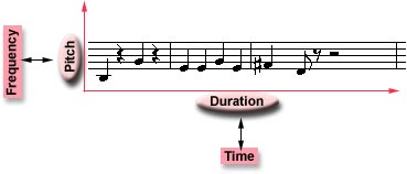 A definition of music depending on the physics of sound, would regard music as a function of frequency and time. In Music Space time would be on the x-axis, while frequency would be on the y-axis, and the bias toward western music concepts should be evident. Common Western Music Notation can also be viewed as expressing music events on these two axes, and in fact, I would argue, from the physics of sound point of view, there can be no music without time and frequency. By its very definition, the cultural activity we call music has some or other form of pitch and duration.