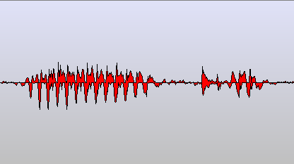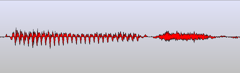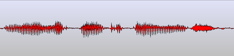 The sounds are more or less continuous waves, yet human language writing makes snapshots of these continuous waves that can be expressed visually as written characters. The graphic displays of the soundwaves above are merely presentations, while the symbols of human writing is an abstraction on an even higher level. Below follows the soundwaves of some sections of the soundwaves that have specific character representations in alphabetical languages, such as within the Latin family.