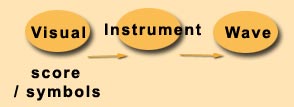 From the point of view of a musician who reads a score, or a musicologist who studies music, the process may start from the opposite end: from the notation system. Except for the eccentric whims of the musicologist who may be interested only in the mathematical ratios, or some other abstract concept derived from the symbolic representation, even when the process is started from this end, the end result would be physical sound waves. The musician reads the score not for fun, but to be able to express something with his instrument. It is important that the musician knows the conventions of the particular writing system, and years of practice to be able to read it very quickly and fluently. And then still he needs to spend a long time analysing the score and practising during rehearsals (except of course in free styles, such as jazz). At performance time the score merely serves as reminder of cues.